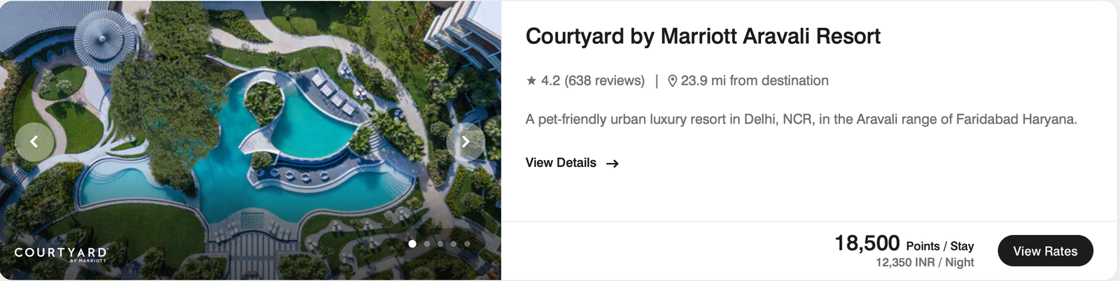 Hotels participating in Marriott Bonvoy8 points per ₹150 3.2 %